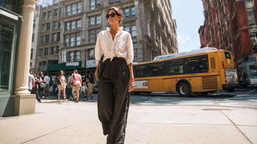For renters, this piece makes sense. Wide-leg trousers feel flexible in spaces where life happens all at once—working, resting, eating, waiting. They don’t demand a certain posture or setting. They adapt.