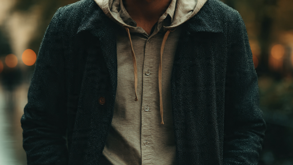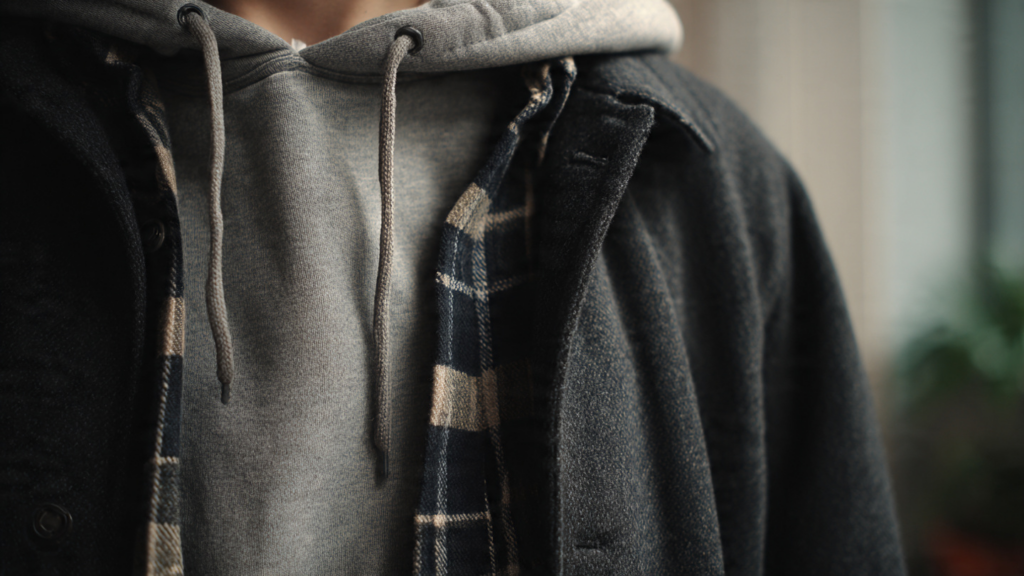 You’ll notice this across streets and screens—people pairing one hoodie with many outfits. Brands matter less here. Whether it’s Nike, Uniqlo, H&M, or a vintage piece, repetition does the work.