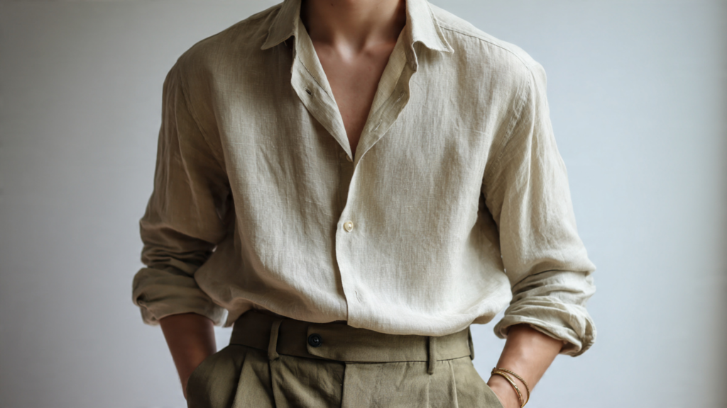 Walking through TikTok feeds and real streets alike, one of the most common summer looks this year is linen—light, slightly crinkled, and beautifully forgiving. Linen shirts and pants in sandy beige, soft white, and faded olive show up everywhere, worn untucked or half-tucked, sleeves rolled without precision.