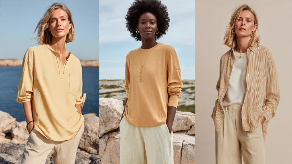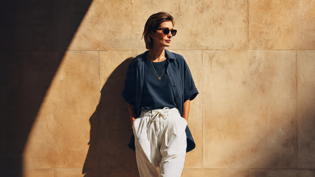 Brands like Arket, Muji, Everlane, and Uniqlo lean into these palettes because they travel well. A light shirt looks good by the sea, in a café, or against unfamiliar walls. Nothing feels too sharp or out of place.