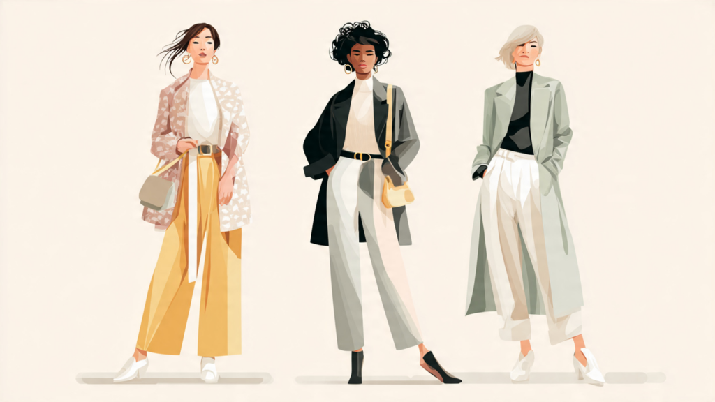 You’ll notice how often the same silhouettes repeat across different creators. Wide-leg trousers. Simple tops. Light layers. Brands like Everlane, Gap, and Muji show up quietly, almost incidentally.